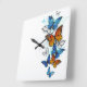 Relógio Quadrado Borboletas voadoras Morpho e Monarca