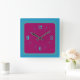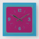 Relógio Quadrado Borda Azul-verde Atmosférica com Centro Cereja