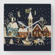 Relógio Quadrado Bordados da Vila Neve de Natal Azul