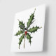 An artful portrait of a Holly sprig is framed within the face of this handsome clock, creating both a functional and an artful aesthetic appeal.
