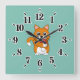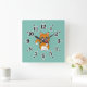 Relógio Quadrado Branca De Gato Branco, Comendo Maçã Vermelha