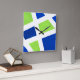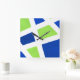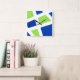 O pulso de disparo de parede imprimiu com pintura acrílica original da série geométrica no azul, no verde limão e no branco.