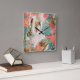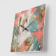 Relógio Quadrado Branco Dourado de Coral de Pintura Abstrato Modern
