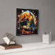 Uma bruxa caminha sob uma lua de colheita assustadora