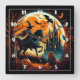 Relógio Quadrado Bruxa maluca cavalgando um cavalo sob uma lua de c