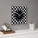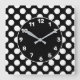 relógio de parede quadrada, com padrão de bolinhas preto e branco