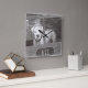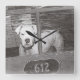 Relógio Quadrado Cachorro branco atrás da porta, preto e branco