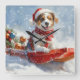 Relógio Quadrado Cachorro Brittany Spaniel no Natal do Sledge