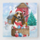 Uma ideia perfeita de presente de Natal para seus amigos amantes de cachorros, Um cachorro fofo sentado em neve ao lado da árvore de Natal e da casa de cachorro é um presente que deve ter para você ou seus amigos neste Natal.