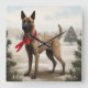 Relógio Quadrado Cachorro Malinois belga no Natal da neve