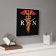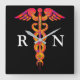 ● design de Caduceus com cor rosa quente, laranja e amarelo-ouro no relógio de parede com "RN" em letras brancas Este relógio tem as mãos de cinza. Se preferir as mãos pretas, você pode mudar ou ver o outro relógio nesta loja já projetado com a opção preta. ● Personalize se quiser mudar para o seu título profissional pessoal usando o modelo fácil disponível.