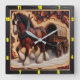 Relógio Quadrado Caminho do Vagão: Clydesdale de Madeira Personaliz