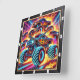 Neon Monster Trucks sobre um fundo colorido de ação flamejante Ilustração dinâmica de caminhões monstruosos iluminados por neon com rodas e chamas vibrantes, rodeados por cores ousadas e efeitos de movimento. Captura uma atmosfera emocionante, ideal para temas automotivos, de corridas e de entretenimento.