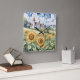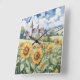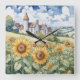 Este item ilustra o campo francês com colinas rolantes, fazenda, nuvens no céu e girassóis em primeiro plano.