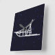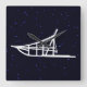 Uma silhueta branca de um trenó sobre fundo estelar.