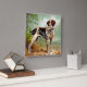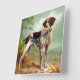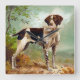 Cão caçador com pássaro na boca. Desenho colorido da safra. Retriever com pele de caçador colorida