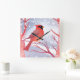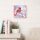 Relógio Quadrado Cardinal Vermelho | Linda pintura em aquarela
