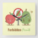Um relógio com um desenho engraçado sobre o tema da fruta proibida. A Apple está apontando para a placa que diz que não há durianos enquanto o duriano está chateado com isso e caminha em lágrimas. A expressão fruta proibida geralmente refere-se a qualquer indulgência ou prazer que seja considerado ilegal ou imoral e que seja geralmente retratado por uma maçã.A reviravolta é que a duria é a que é perseguida (por exemplo, hotéis, transportes públicos) devido ao seu forte cheiro picante. Um design alegre e humorístico!
