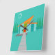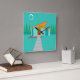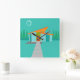 Este relógio de parede acrílico quadrado da Casa de Cartoon da Idade Espacial é um sonho do amante retrô. A design de arte minimalista apresenta uma casa de pedra aquática com janelas azuis grandes e pavões. Passando do atômico, entorpecendo, telhado laranja, uma luminária amarela acende a porta da frente. A porta vermelha com porta estelar é perfeitamente deslocada pelos pranchas verticais verdes de madeira da entrada externa. Um caminho de pedra cinza atravessa o gramado pristino, que parece turquesa à luz da lua. Atrás da casa, uma fileira de árvores altas, finas apontam para o céu azul-turquesa e a silhueta branca de uma lua de cheio. Embora nenhuma pessoas seja visível, numa noite como esta, os habitantes da casa de kitschy estão provavelmente a assistir a imagens noticiosas dos astronautas.