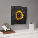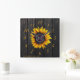 Um relógio de parede no estilo russo do país com um girassol de ouro amarelo sobre um fundo de madeira marrom-escura. +++++++++++++ Personalize-o com seu nome de família e texto! +++++++++++ Pode ser um belo presente de manutenção para o seu aniversário de família, casamento, chá de casal, aquecimento doméstico.
