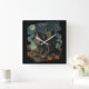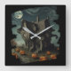 Relógio Quadrado Casa de Halloween Assombrada com Pumpkins e Lua Ch