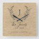 Monograma personalizado e nome com família estabelecido no ano e colocar um relógio de quedas elegante no estilo de fazenda chic, beige burlap wall. +++++ Um presente moderno de manutenção para casamentos, aniversários, exércitos domésticos, Ação de Graças, feriados de Natal.