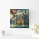 Relógio Quadrado Castelo antigo sob ataque de um Dragão Voador