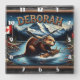 Relógio Quadrado castor canadense com bandeira perto de montanhas c