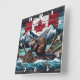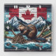 Relógio Quadrado castor canadense pela bandeira e montanhas