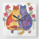 Relógio Quadrado Cats Holding Hands Folk Art