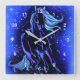 Relógio Quadrado Cavalo Azul Neon Correndo À Lua À Noite Estrelada