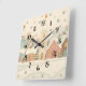 Relógio Quadrado Cena da Vila Snowy de Natal Embroiderada