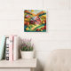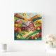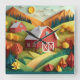 Relógio Quadrado Cena de Farmhouse do Estilo de Origami de Arte em