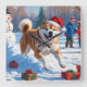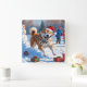 Relógio Quadrado Cena de Neve Festiva Akita Christmas