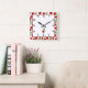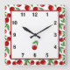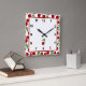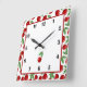Relógio Quadrado Cerejas Vermelhas Por Todo O Gráfico
