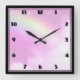 Relógio Quadrado Céu rosa com arco-íris amarelo limão