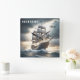 Um relógio clássico de design com clipe de safra em um oceano tempestuoso. No editor avançado está disponível uma indicação de hora (você pode torná-la visível clicando no ícone à direita da camada). Um belo relógio para quem ama barcos ou uma casa de praia.
