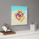 Este relógio da parede de verão apresenta um par de chinelos laranja de verão em um fundo azul-aqua e cor de areia. Para mais decorações nas casas de verão, visite o resto deste compro.