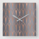 Relógio Quadrado Cinza de Geometria de Cobre Dourada Art Deco Cinza