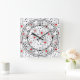Relógio Quadrado cinzas com flores vermelhas no retrato branco de f