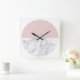 Relógio Quadrado círculo geométrico elegante de mármore rosa-claro-