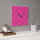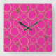 Relógio Quadrado Círculos Dourados e Moderno Chic Rosa Vibrante