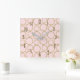 Relógio Quadrado Círculos Dourados e Tópico Moderno Rosa Rosa Rosa