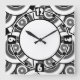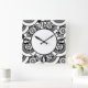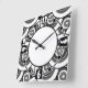 Relógio Quadrado Círculos e anéis - padrão geométrico preto e branc