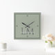 Relógio Quadrado Classic Sage Green Monogram Office Accent