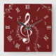 Relógio Quadrado Climactic G Clef Music Red Roman Numerals