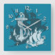Relógio Quadrado Clock de Parede Branca de Envio Pirata e Âncora 2