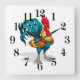 This wall clock is shown with a cute colorful farm rooster art print.