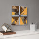 Bloqueios de parede com números brancos. Barred é um desenho abstrato criado pela Vexenwraith e consiste em formas castanhas, laranja, bronzeadas e cinzas atrás de bares de gradientes prateados.