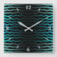 Relógio de Parede Quadrado, decoração de arte de parede e decoração de casa fornando acessório de decoração impresso com Abstrato de Turquoise de Salty Beach Salty Waves Repórter padrão design de arte pela ilustração original de OFabricSeal impressão a pedido compra em Zazzle.com #ZazzleMade https://www.zazzle.com/store/thefabricseal TheFabricSeal ©️ Original. Arte moderna contemporânea desenhada artisticamente e impressa para o seu estilo de praia como lar e acessórios vivos, decoração caseira, declaração de moda, acessórios eletrônicos modernos e tons de presentes. Este é um padrão de repetição de quatro partes legal que tem a ilusão de listras de pele zebra turquesa. Esta pop de cores da praia costeira apresenta muitas tonalidades de cor, incluindo turquesa verde-azul, chalé, espuma-do-mar, aqua, ciano, celeste, opal, aquamarine, jade, Caribe, tropical, ilhéus, água do oceano e paleta de gelo glaciar ártico sobre um fundo preto a jato.